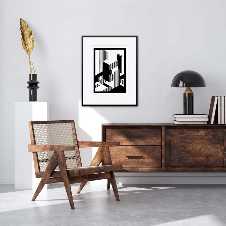 Afin de préserver le caractère authentique de chaque oeuvre, j’imprime mes linogravures en séries limitées à 20 exemplaires. La technique d’impression est très artisanale, ce qui rend chaque tirage unique. Je n’utilise que du matériel de qualité tout au long du processus de création. Les gravures sont imprimées sur un papier édition Arches Rives BFK avec de l’encre spécialement conçue pour la linogravure qui garantit une très bonne tenue dans le temps. Pour vous simplifier la vie, les gravures sont vendues encadrées (vous choisissez la couleur du cadre lors de la commande), avec un passe-partout de qualité musée. Les oeuvres sont donc prêtes pour l’accrochage.
